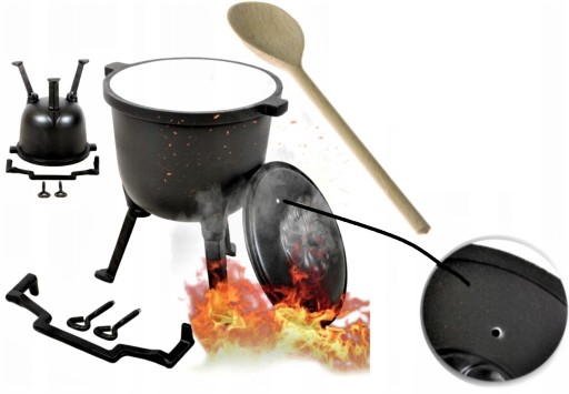 KOCIOŁEK MYŚLIWSKI ŻELIWNY EMAILOWANY 8 LITROWY