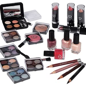 - 24 x cień do powiek, 4 x lakier do paznokci, 2 x róż, 4 x pomadka.