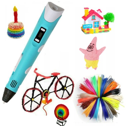 Długopis 3D to urządzenie o kształcie długopisu, z którego końcówki wydobywa się nie rozpuszczony filament (dołączony do zestawu) który po wyjściu z długopisu bardzo szybko zasycha pozwalając tworzyć rysunki i przedmioty w trzech wymiarach.