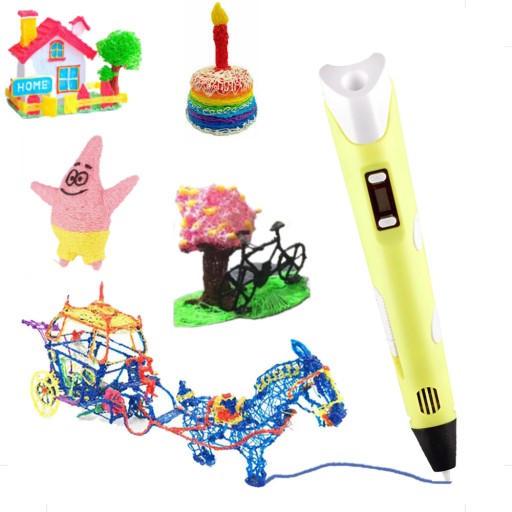 Długopis 3D to urządzenie o kształcie długopisu, z którego końcówki wydobywa się nie rozpuszczony filament (dołączony do zestawu) który po wyjściu z długopisu bardzo szybko zasycha pozwalając tworzyć rysunki i przedmioty w trzech wymiarach.