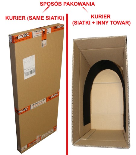 -SIATKI Z DODATKOWO ZAKUPIONYM TOWAREM O WIĘKSZEJ NIŻ 5cm WYSOKOŚCI, PAKOWANE W KSZTAŁCIE LITERY "U". SIATKĘ MOŻNA BEZ PROBLEMU ROZŁOŻYĆ, PO WYJĘCIU Z PUDEŁKA. NA ŻYCZENIE MOŻEMY W TEN SPOSÓB WYSŁAĆ SIATKĘ RÓWNIEŻ BEZ INNEGO TOWARU.
