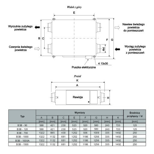 PRZECIWPRĄDOWY REKUPERATOR Z ODZYSKIEM CIEPŁA B3B-700 - 1050 M3/H