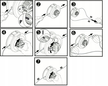 Wymiana żyłki w tej głowicy odbywa się bez konieczności rozbierania głowicy: