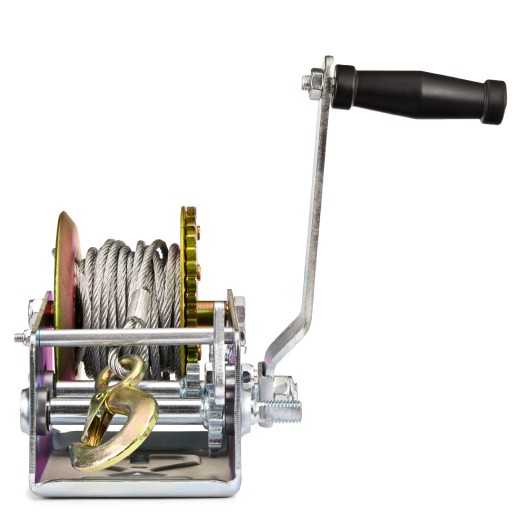 Wciągarka ręczna wykonana z wysokiej jakości materiałów zapewniających jej odpowiednią trwałość i niezawodność. Wyposażona jest w mocny odlewany hak ze sprężyną zwrotną. Sprzęt zapewnia bezpieczne i bezproblemowe wciąganie i opuszczanie przedmiotów.