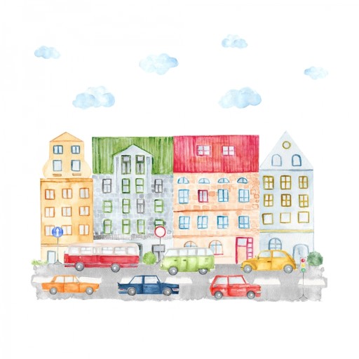 NAKLEJKA NA ŚCIANĘ ZAŁÓŻKOWNIK MIASTO SAMOCHODY DOMY