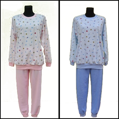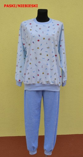 DŁUGI RĘKAW I DŁUGIE SPODNIE, USZYTA Z DZIANINY FROTTE, SKŁAD BAWEŁNA 80% POLIESTER 20%, KRÓJ LUŹNY, RĘKAWY I SPODNIE WYKOŃCZONE ŚCIĄGACZAMI, PIŻAMA DWUKOLOROWA, BLUZKA BIAŁA W PASECZKI I DRUK, SPODNIE GŁADKIE, WYKOŃCZONA ŚCIĄGACZAMI.