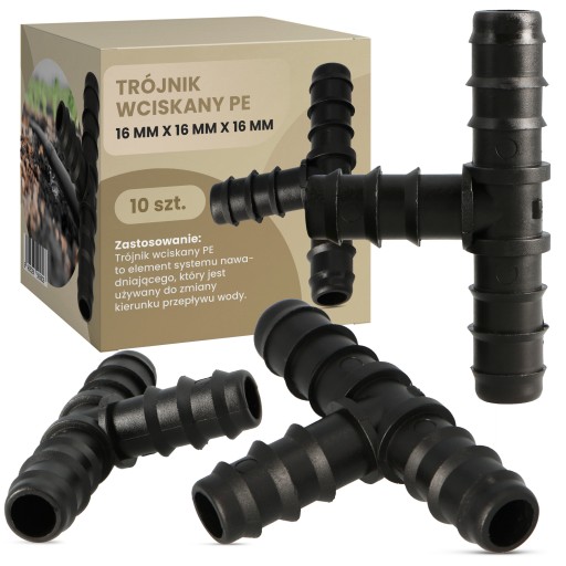 10x TRÓJNIK PE 16 MM WCISKANY WTYK ZŁĄCZKA ŁĄCZNIK WĘŻA RURY KROPLUJĄCEJ