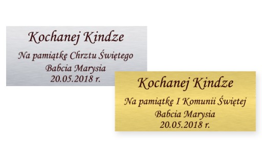Docelowo grawery na Biblie wykonujemy na blaszce w złotym kolorze, jeśli wolisz srebrną blaszkę – poinformuj nas o tym.