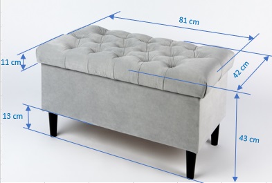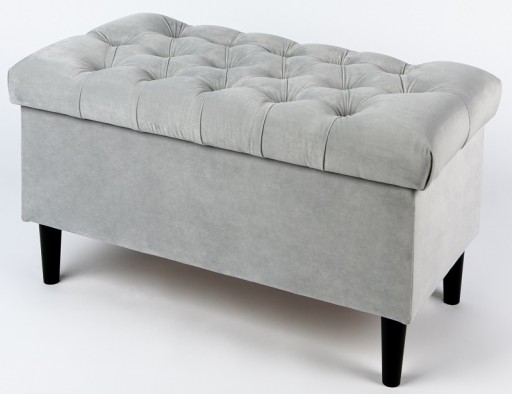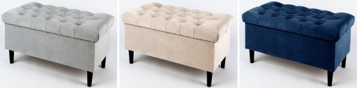 Ławka wykonana jest z welurowej, miękkiej w dotyku tkaniny w modnych, uniwersalnych kolorach.