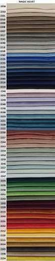Magic Velvet to dzianina welwetowa w wielu wariantach kolorystycznych. Mnogość kolorów pozwala na dopasowanie jej do wielu stylów wystroju wnętrz i różnorodnej kolorystyki.