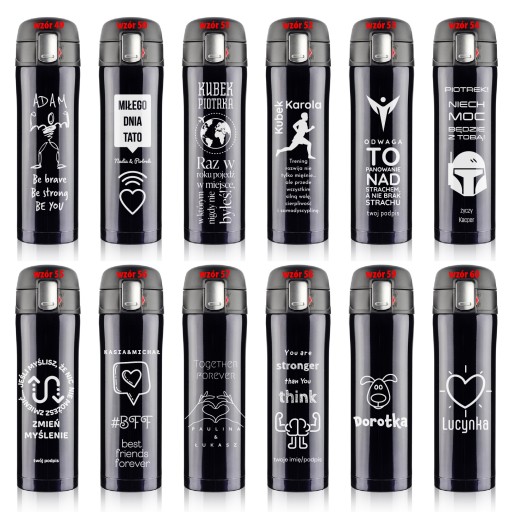 Wyróżnij się z tłumu. Podpisz swój kubek lub zrób przyjemność oryginalnym prezentem komuś bliskiemu. Wybierz wzór, wygrawerujemy go specjalnie dla Ciebie. Będzie Twoim ulubionym kubkiem. Podaj imię, ksywę, datę, motto, dedykację - co chcesz umieścić na kubku. Przed realizacją prześlemy Tobie projekt - wizualizację do akceptacji.