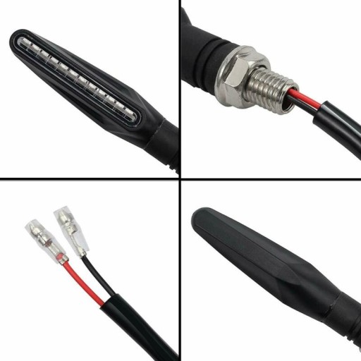 Kierunkowskazy montowane na gwint M10 wyposażone w elastyczne ramię chroniące migacz przed złamaniem.