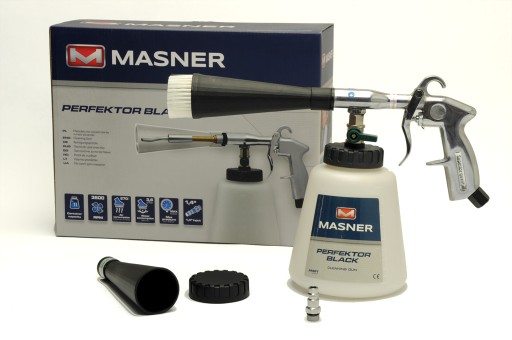 - Zamontowana w pistolecie dysza wytwarza pod wpływem sprężonego powietrza spieniony roztwór czyszczący (wymagane źródło sprężonego powietrza.