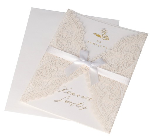 Bogato zdobiona kartka będzie piękną pamiątką tak ważnego sakramentu .