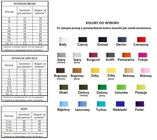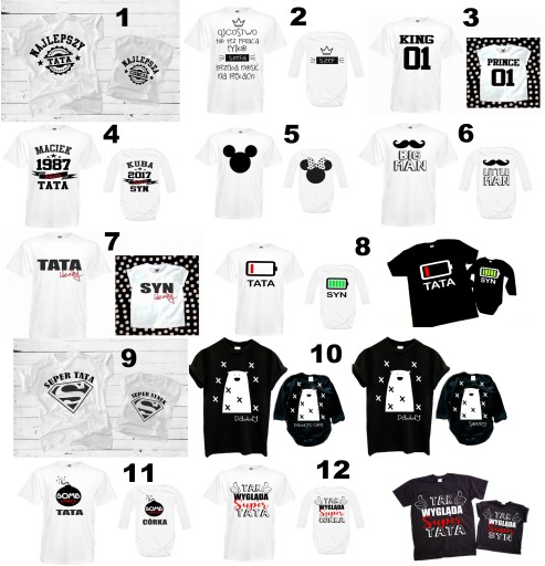 Podana cena jest za komplet 2 sztuk koszulek - męska i dziecięca koszulka lub body.