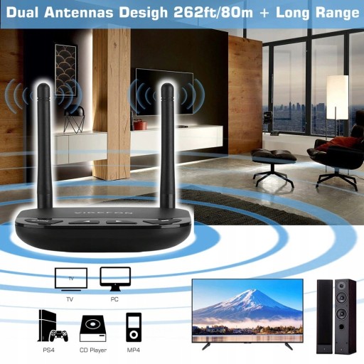 Dzięki dwom antenom adapter BT-B21 zapewnia daleki zasięg w otwartej przestrzeni (do 80m) i do 25-35M wewnątrz pomieszczeń.