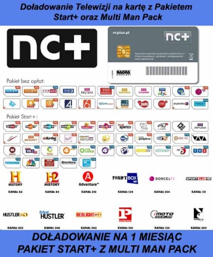 DOŁADOWANIE KART NC+ TNK START+ Z MULTI MAN PACK NA 1 MIESIĄC O WARTOŚCI 54ZŁ.
