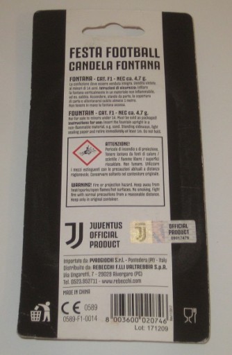 Fontanna na tort + kartka urodzinowa - w barwach Juventusu. Nowe. Z Włoch. Cena za komplet.