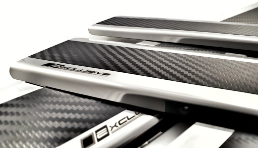 - Nakładki z stali kwasoodopornej (pokryte folią karbonową) wycinane są metodą laserową,