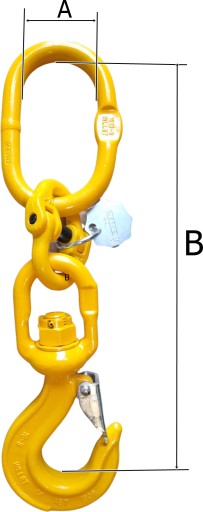 Zawiesie z ogniwem zbiorczym /wym. ogniwa 110 x 60 mm / oraz z hakiem obrotowym z zabezpieczeniem przed wypięciem cięgna z zapadką.