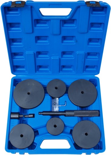 Zestaw służy do montażu poprzez pobijanie łożysk oraz uszczelniaczy. Wszystko w eleganckiej walizce.