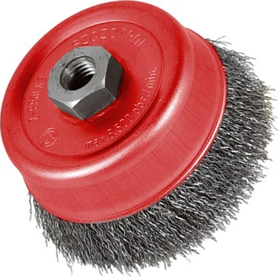 SZCZOTKA DOCZOŁOWA 65 MM M14x2 MM (S) DRUT STALOWY KARBOWANY.
