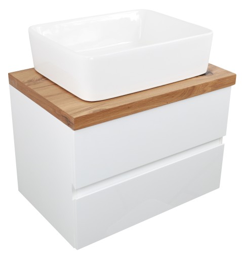 Podwieszana szafka łazienkowa pod umywalkę z blatem dąb rustykalny.