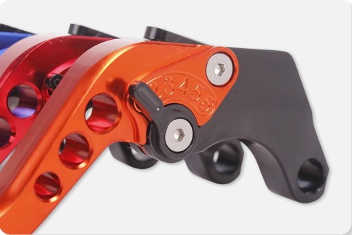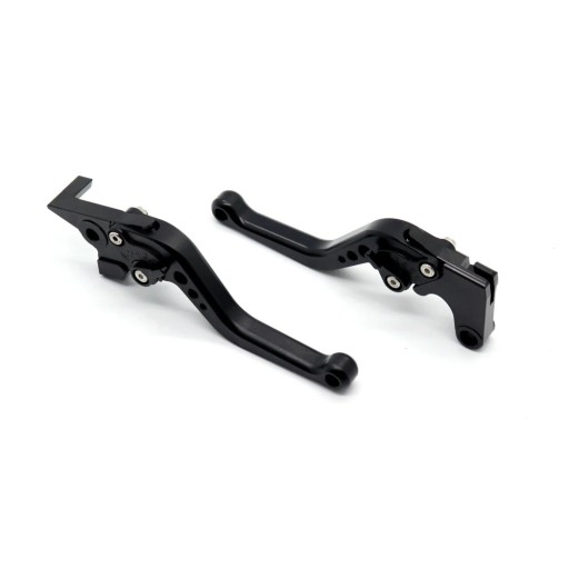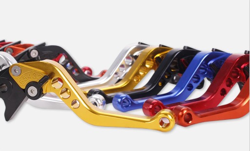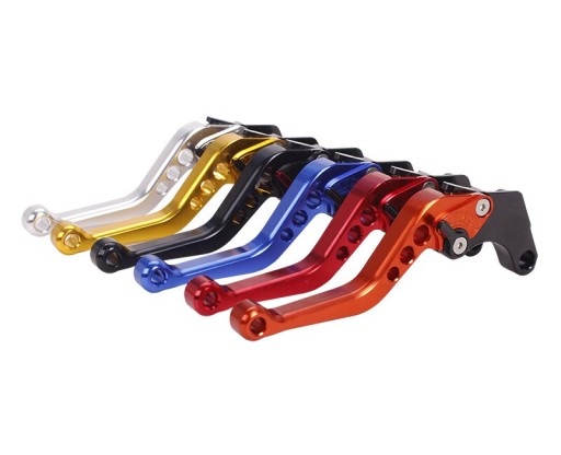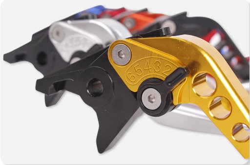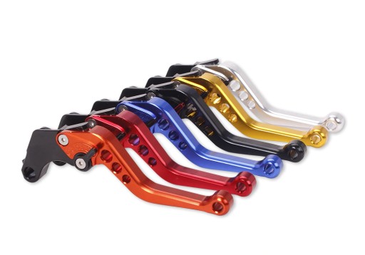 Klamki zostały wykonane technologią CNC z aluminium. Kolor został nadany w procesie anodowania dzięki czemu mają wysoką odporność na wycieranie oraz wyblaknięcie. Sześcio stopniowa regulacja odchylenia klamek od manetek pozwala na ustawienie ich wg swoich preferencji. Gładki profil klamek poprawia komfort użytkowania. Krótkie klamki przystosowane są do jazdy sportowej „na 2 palce” umożliwiając szybszą reakcję.