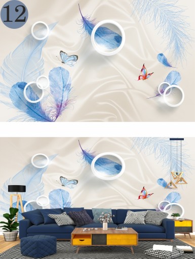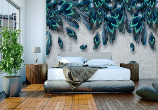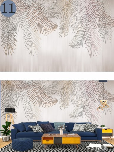 ФОТО ОБОИ ПЕРО ЦВЕТ ПАЛЬМОВЫЕ ЛИСТЬЯ ГРАФИКА