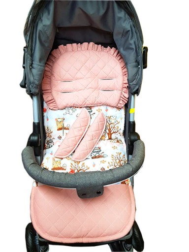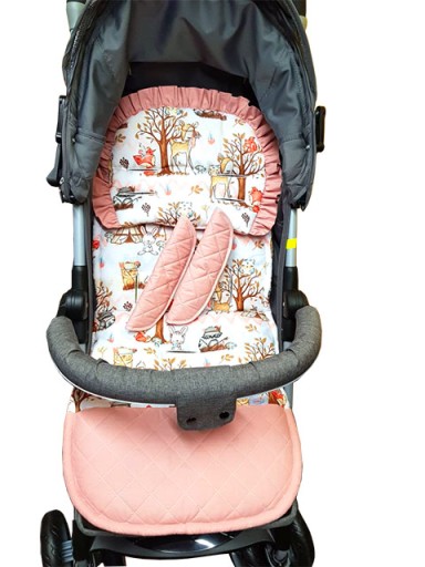 W komplecie znajdują się również poduszeczka oraz osłonki na szelki do wózka,