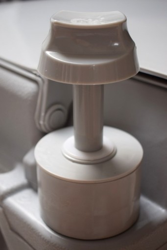 Krok 4: Po użyciu zamknij pokrywę, wciśnij pompkę mieszkową jeden lub więcej razy, aby przepłukać miskę