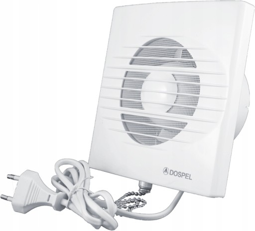 Jest to wentylator domowy, wentylator ścienny, wentylator kuchenny, wentylator na ścianę, wentylator łazienkowy, wentylator osiowy, wentylator wyciągowy, wentylator z wyłącznikiem pociąganym, wentylator wyłącznik pociągany, wentylator z łańcuszkiem, wentylator łańcuszek, wentylator ze sznurkiem, wentylator sznurek, wentylator z przewodem zasilającym, wentylator przewód zasilający, wentylator z kablem, wentylator kabel