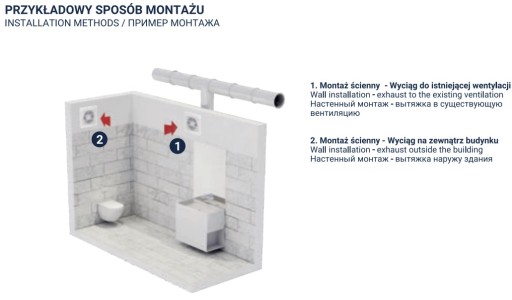 - Jest to wentylator ścienny, który może odprowadzać powietrze zarówno bezpośrednio na zewnątrz budynku jak i do istniejącej instalacji wentylacji grawitacyjnej -komina.