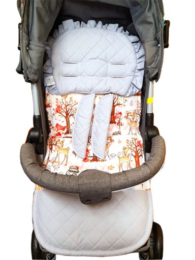 W komplecie znajdują się również poduszeczka oraz osłonki na szelki do wózka,