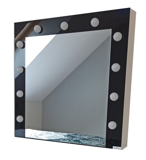 Najważniejszą kwestią jest oświetlenie, dlatego zamontowaliśmy w naszym lustrze aż 11 żarówek, które mają za zadanie równomiernie i dostatecznie mocno oświetlić twarz, zamontowane żarówki są oczywiście LEDowe, pobierają dużo mniej energii niż zwykłe klasyczne i co ważne, nie nagrzewają się zbyt mocno. Rozmieszczone są po obu stronach tafli lustra oraz od góry.