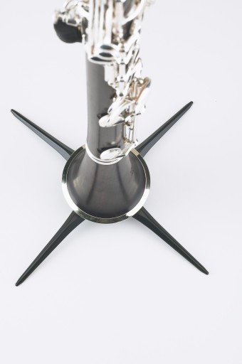 Wyjątkowy, kompaktowy stojak na klarnet z czarnym plastikowym kołkiem pasującym do klarnetów Es i B. Podstawa z 4 nogami zapewnia maksymalną stabilność instrumentu. Odłączana metalowa podstawa na nogi wkręca się w stojak, dzięki czemu cała jednostka może być przechowywana w dzwonie klarnetu. Bardzo przydatne!
