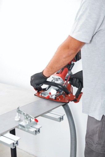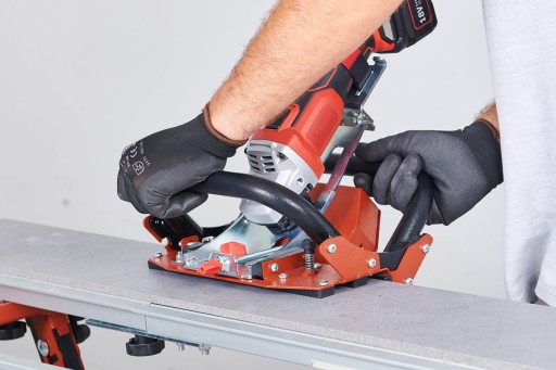 • Działa pochylając się i przesuwając po krawędzi płytki - gwarantuje to szybkie i precyzyjne wykonanie pracy i pozwala na pracę bez ograniczeń długości.