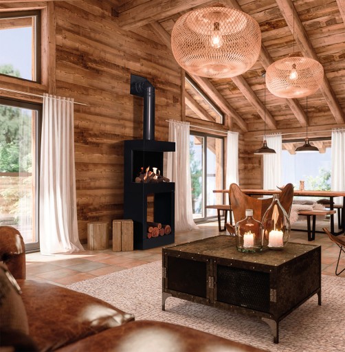 Kominek gazowy wolnostojący o mocy 5 kW z zamkniętą komorą spalania jest w stanie ogrzać pomieszczenie od 30 do 60 metrów kwadratowych. Kominek posiada drewniany wkład ceramiczny i może być zasilany gazem ziemnym lub gazem płynnym propan lub propan butan. Na życzenie klienta nasze firma przygotowuje kominek gazowy na wskazany rodzaju gazu. Kominek wolnostojący posiada czarną, stalową konstrukcję otoczoną z trzech stron żaroodpornymi szybami. Komora spalania kominka gazowego jest hermetyczna, pobór powietrza do spalania jest z zewnątrz poprzez system turbo, czyli rura w rurze. System turbo to dwie rury, jedną wewnętrzną wyrzucane są spaliny, natomiast rurą zewnętrzną następuje doprowadzenie powietrza do spalania. Dodatkową korzyścią jest to, że powietrze dostarczone do spalania wstępnie jest podgrzewane przez spaliny, co oznacza wyższą sprawność. Wewnątrz kominka znajduje się bardzo realistyczny wkład ceramiczny w kształcie drewnianych kłód. Całość kominka gazowego przypomina kominek tradycyjny. Ponieważ komora spalania jest jednocześnie obudową kominka gazowa, grzeje ona pomieszczenie za pomocą konwekcji i przewodzenia ciepła. Trzy szyby nadają kominkowy przestrzenny wygląd i doskonale przepuszczają promienie podczerwone powstające w kominku gazowym podczas spalania gazu wewnątrz komory spalania. Efekt promieniowania ciepła daje natychmiastowe odczucie ciepła w ogrzewanym pomieszczeniu. W pomieszczeniu wyziębionym dzięki uruchomieniu kominka gazowego natychmiastowo odczuwamy ciepło.