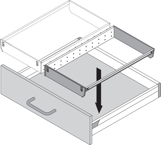 Wysokiej jakości system organizacji wewnętrznej w każdej szufladzie standardowej i szufladzie z wysokim frontem tworzy zachwycający porządek. Sztućce, butelki lub garnki, wszystkie przedmioty można przechowywać w bezpieczny i wygodny sposób. Zaprojektujcie Państwo przestrzeń do przechowywania przejrzyście i według potrzeb.