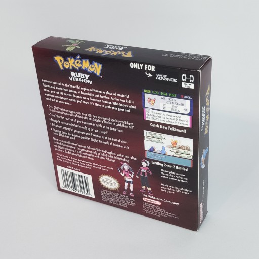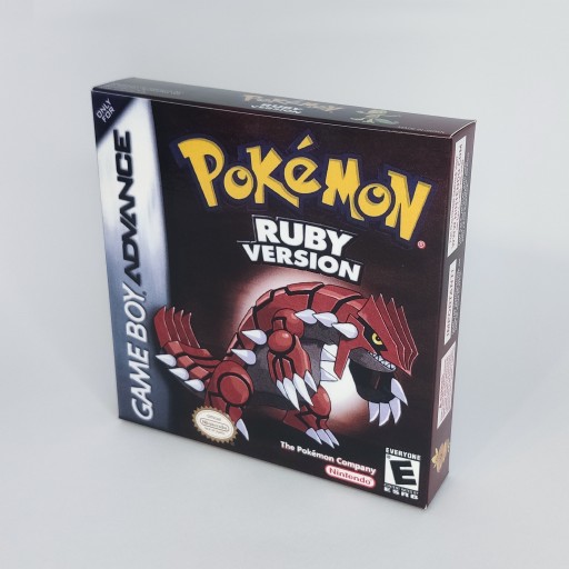 Replika opakowania do gry Pokemon Ruby na konsolę Nintendo GameBoy Advance. Pudełka wykonane są z papieru o grubości 300g/m² z błyszczącym wykończeniem - zbliżone do oryginału.