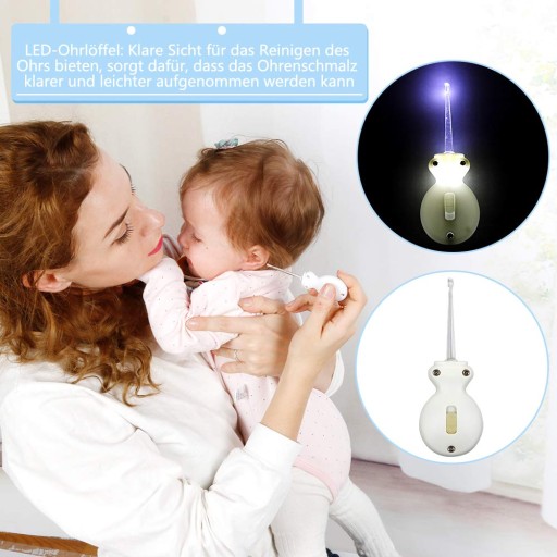 - Zestaw do pielęgnacji niemowląt wygląda ergonomicznie, wygodnie i bezpiecznie. Medyna jest wygodna: urządzenie do odsysania nosa pompy umożliwia łatwe czyszczenie zanieczyszczeń z nosa, a konstrukcja dzielona jest łatwa do rozłożenia i czyszczenia. Podświetlana łyżka do uszu z podświetleniem LED umożliwia łatwe czyszczenie i obserwowanie małych uszu dziecka.