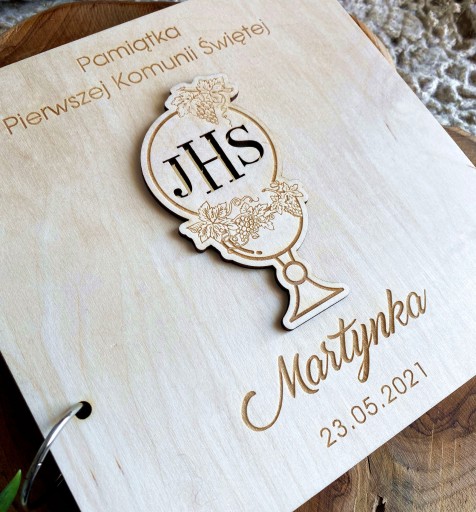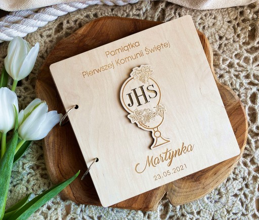 Pamiątka I Komunii Świętej - drewniany album na zdjęcia - idealny pomysł na prezent