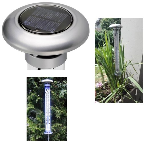 Dzięki wodoszczelnemu, solarnemu termometrowi ogrodowemu nie tylko upiększają Państwo swój ogród, ale są poinformowani także w ciemności o aktualnej temperaturze. Podświetlenie skali temperatury włącza się automatycznie.