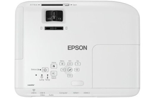 Projektor EPSON EB-FH06 obsłużysz za pomocą jednej dłoni. Posiada wygodne przyciski na pokrywie obudowy, które są bardzo intuicyjnie rozmieszczone i opisane za pomocą tekstu i ikon. Dodatkowo na krawędzi urządzenia znajdziesz opis złączy, które możesz podłączyć w danym miejscu, co pozwoli Ci uniknąć bezowocnych prób połączenia gniazda USB z przewodem o wtyczce HDMI. Pilot umożliwi Ci obsługę sprzętu nawet bez konieczności wstawania z kanapy.