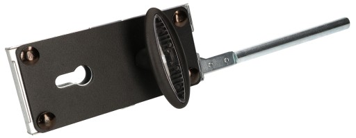 - Otwieranie i zamykanie zamka do bram garażowych odbywa się przy pomocy wkładki (klucza) od zewnątrz, przesuwki od wewnątrz, natomiast uruchamianie rygla następuje dzięki klamce.