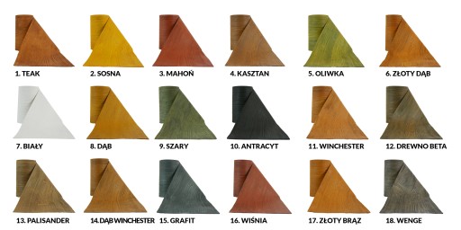 Kolory są podpisane w galerii . Obecnie jest dostępnych 18 wariantów kolorystycznych paneli akrylowych: