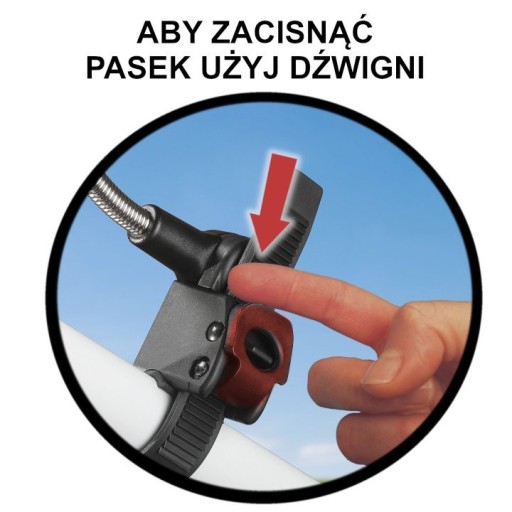 - Sposób mocowania: uniwersalna klamra, można ją zamocować do rurki (okrągłej lub owalnej) o średnicy do 5cm