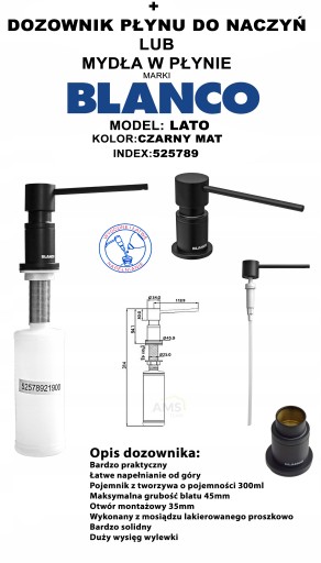 - DOZOWNIK PŁYNU DO NACZYŃ BLANCO LATO W KOLORZE CZARNY MAT