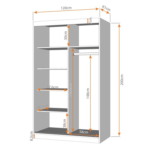 SZCZEGÓŁOWE WYMIARY SZAFY