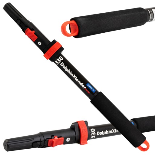 - Dodatkową i bardzo ważną zaletą kija DolphinXtender jest również system mocowania uchwytu. Po nałożeniu uchwytu na kij mamy dodatkową blokadę, która powoduje, że uchwyt trzyma się bardzo stabilnie.